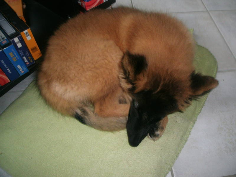 In der Schule waren es natürlich sehr viel mehr Kinder, die sich aber alle sehr freundlich verhielten. Ich besuchte das vierte Schuljahr. Dort habe ich mir bei jedem Kind etwas von meinem Futter abgeholt, hab' gezeigt, was ich schon so gelernt habe und vorgemacht, wozu welches Hundespielzeug gut ist. Während sich dann alle im Stuhlkreis noch über meine Rasse und Welpen und Hundeerlebnisse unterhielten, habe ich die Zeit für ein Nickerchen genutzt.